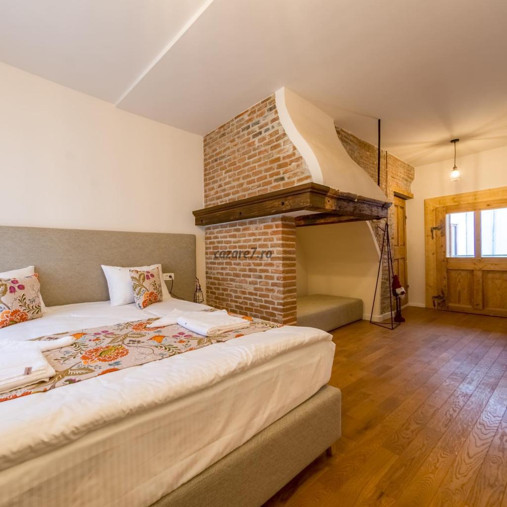 Camera king are o atmosfera aparte datorita fostului loc de vatra pastrat in arhitectura camerei. In camera king este un pat matrimonial king size si o sofa de o persoana, o baie proprie cu dus. Este singura noastra camera care are un balcon pozitionat spre curtea Bisericii Negre. Suprafata: 28 mp. Poate acomoda maxim 3 persoane.